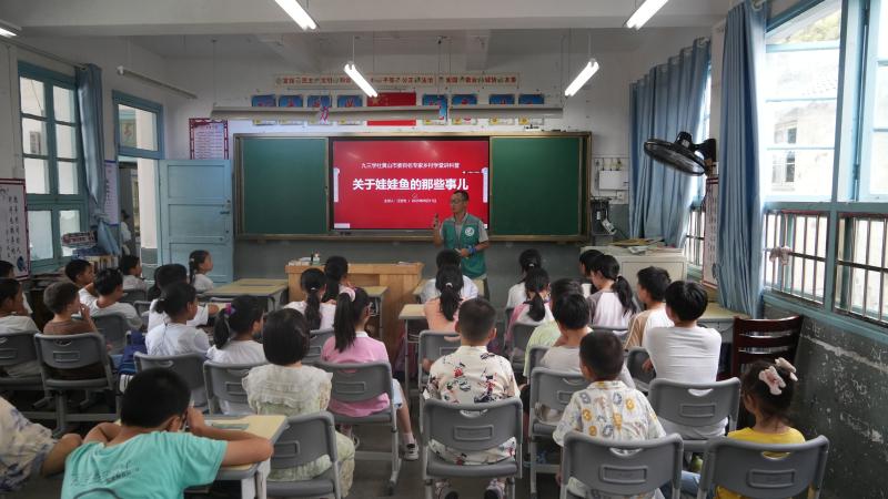 9月17日,九三学社市直一支社社员、黄山自然之歌工作室负责人汪世利赴休宁倒流口小学开展科普月活动,以“关于娃娃鱼的那些事儿”为主题,为学校近五十名师生和安徽黄山大鲵省级自然保护区巡护员开展科普讲座。