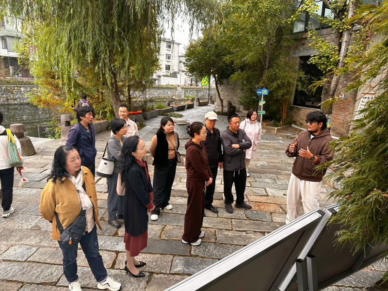 调研首站,社员们来到备受关注的NCC黑多岛数字游民社区。在社区负责人的详细介绍和引导下,大家深入了解了该社区依托黟县优越的自然生态与人文环境,吸引汇聚数字游民、创业者、创作者和生活方式探索者等新兴青年群体,打造共居共创社区的具体实践。社员们就数字游民社区的发展理念、运营模式、对当地产业升级与人才引进的带动效应,以及可能面临的挑战等问题,与社区运营团队进行了深入交流与探讨。随后,社员们怀着崇敬的心情参观了中共黟县县委诞生地纪念馆。在庄严肃穆的氛围中,大家通过观看珍贵的历史图片、文物史料,聆听生动讲解,重温了那段波澜壮阔的革命岁月。