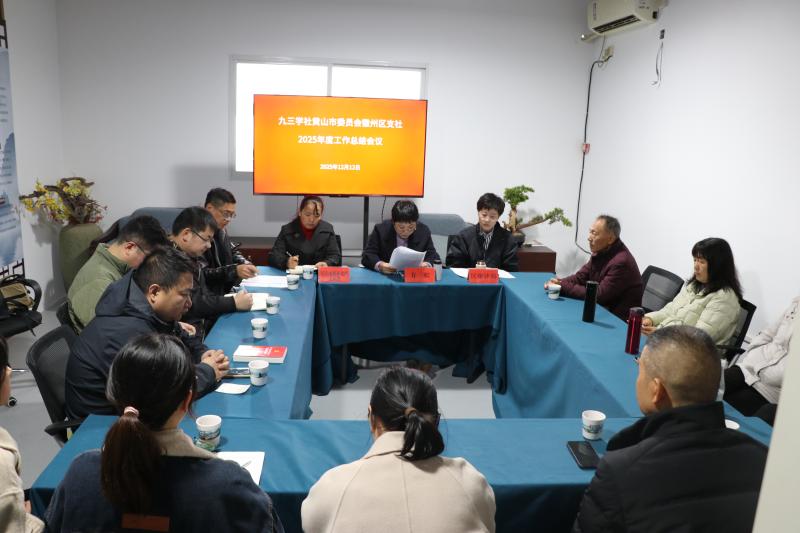 12月12日,九三学社徽州区支社主委方虹召开2025年度工作总结会议,区委统战部党派工商股负责人郑亦惠受邀出席会议,支社全体社员参加会议。