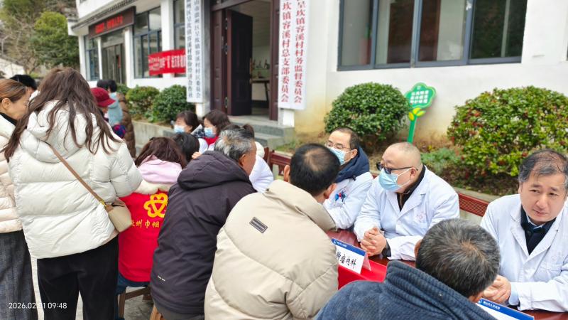 2月1日,九三学社黄山市徽州区支社联合市医院支社,前往徽州区呈坎镇容溪村,开展“福进万家健康同行”活动,为当地村民送去新春的温暖与关怀。