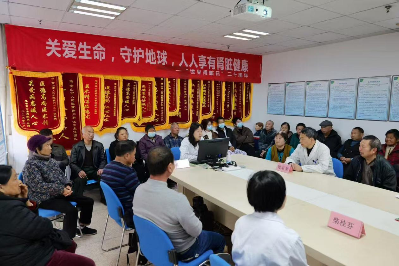 肾内科主任汪宏牵头组织肾内科病区、血透中心、腹透中心的专家医护团队,在黄山市人民医院香樟园开展大型义诊活动和“关爱肾脏,从了解开始”专题讲座。义诊现场,医护人员为市民免费测压、耐心解答各类肾脏健康相关疑问,细致普及肾脏疾病防治知识,助力市民提升健康素养;讲座现场,汪宏与患者及家属面对面互动交流,针对解答大家在肾脏健康管理中的困惑,帮助群众建立科学的肾脏保护意识,提升自我健康管理能力。