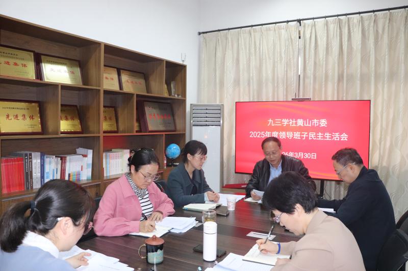 3月30日下午,九三学社黄山市委召开2025年度领导班子民主生活会。黄山市政协副主席、社黄山市委主委吴灵强主持会议,副主委程敏、张徽秀、张艳参加会议。中共市委统战部四级调研员章卫群应邀到会指导,社市委内部监督委相关负责同志列席会议。